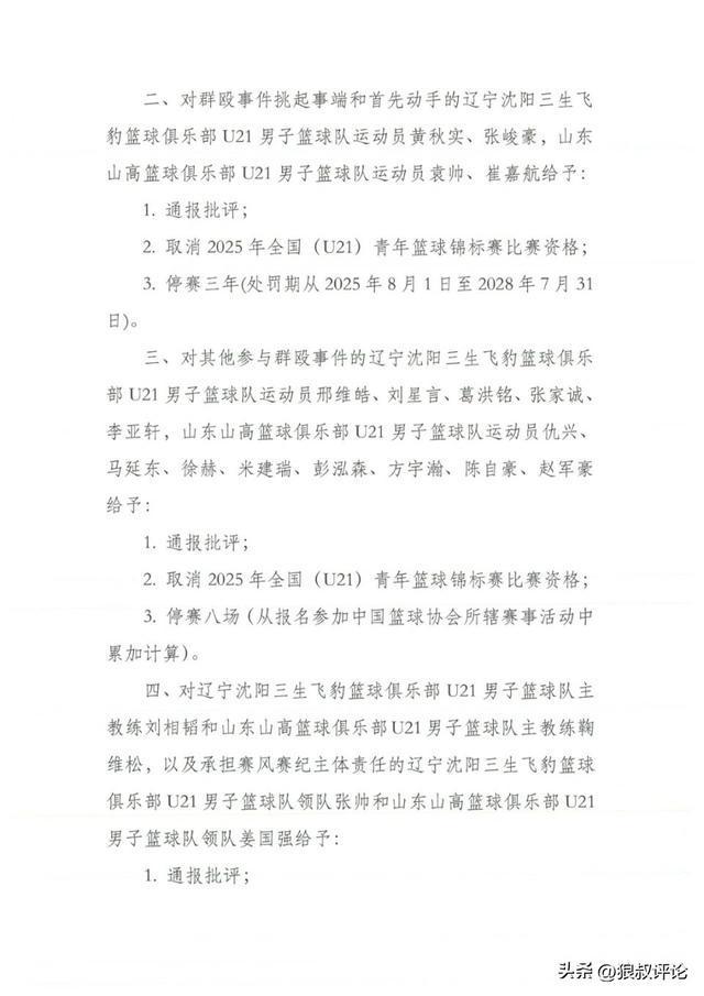 此前,辽宁和山东青年队爆发冲突,张峻豪,黄秋实被定义为对群殴事件挑起事端和首先动手的运动员,两人遭到禁赛三年的重罚,不能参加中国篮协体系的任何正规比赛。
